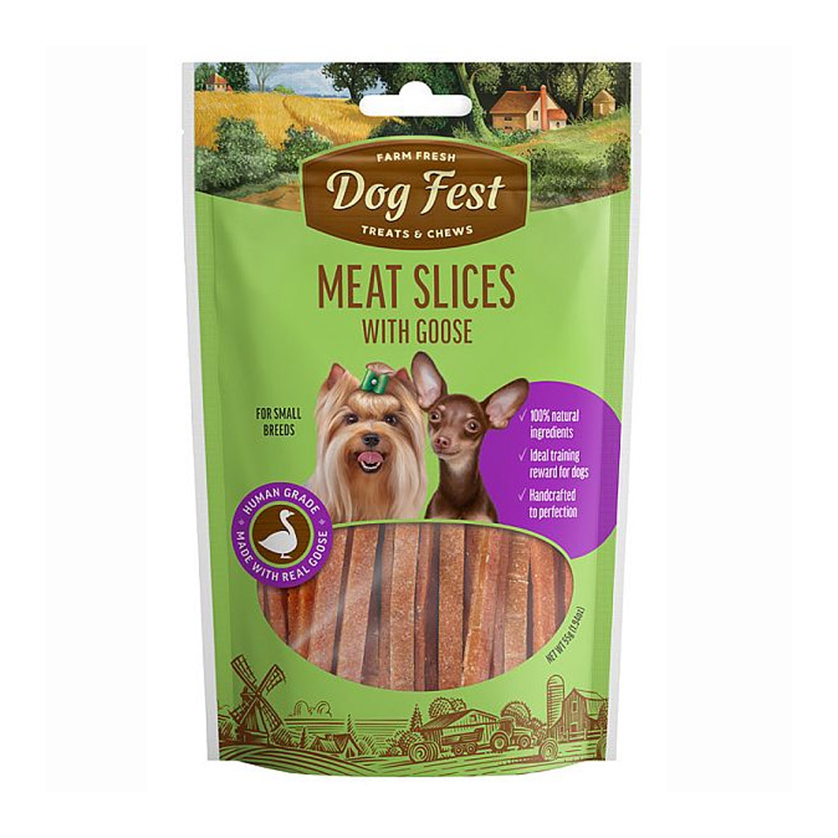 اگر دنبال یک تشویقی سالم و خوشمزه برای سگتان هستید، Dog Fest Meat Slices with Goose گزینهای عالی است. این محصول به شکل نوارهای جویدنی و با طعم گوشت غاز طراحی شده تا هم سرگرمی و لذت جویدن فراهم کند و هم تغذیه سالم سگ را تامین نماید.