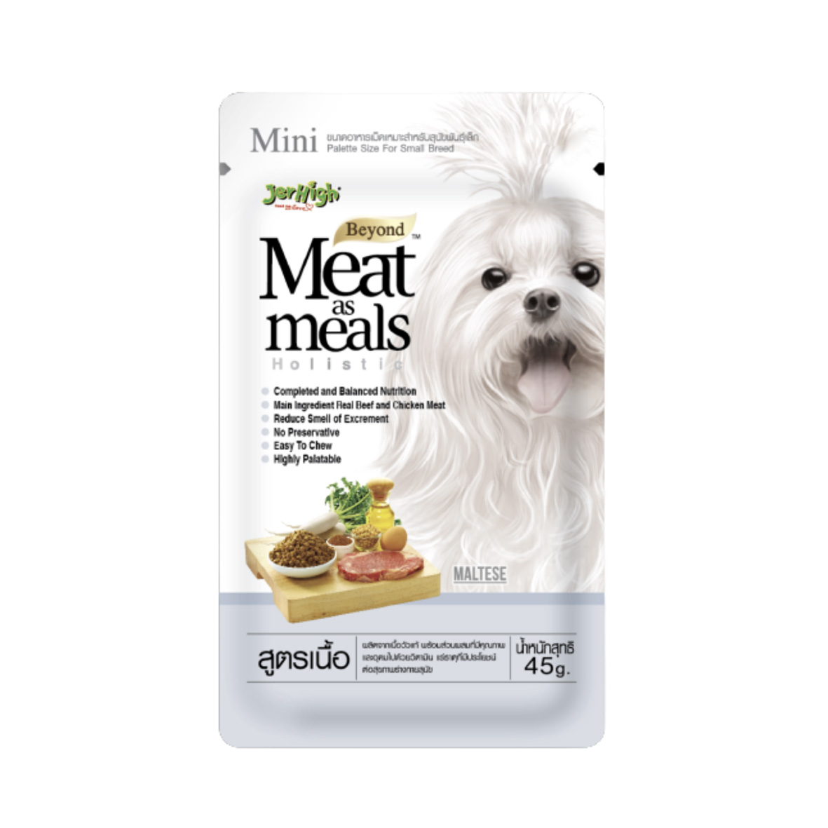 پوچ سگ JerHigh Meat As Meal طعم گوشت (Beef) یک غذای آماده و خوشمزه مخصوص سگهاست که با گوشت گاو واقعی تهیه شده است. این محصول با بافت نرم و آماده مصرف، برای سگهای کوچک و متوسط گزینهای عالی برای وعده اصلی یا میانوعده محسوب میشود.